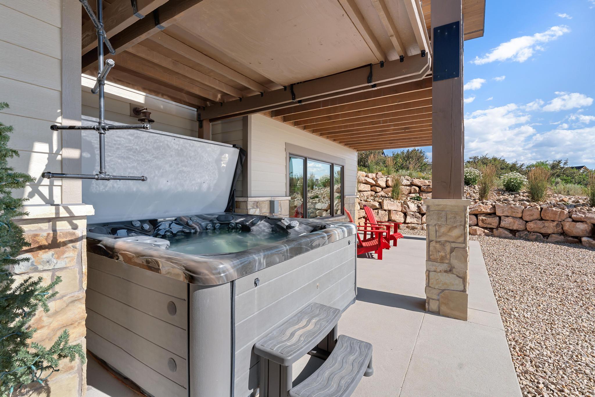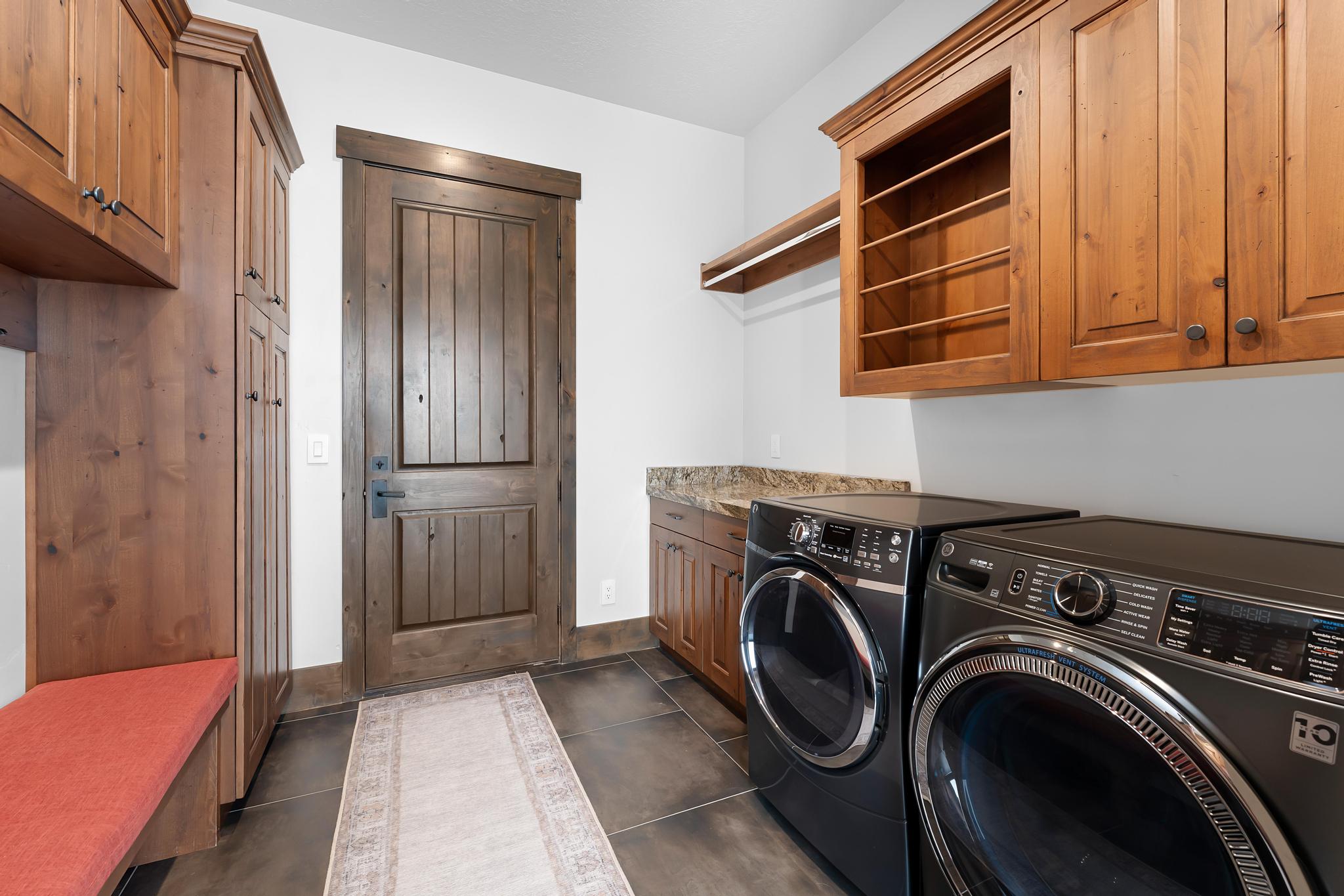 Head outdoors to find another covered patio, serving as the ideal spot for watching the sunset or relaxing with your morning coffee. High-end upgrades include dog wash in one bay of the oversized garage, an additional 1976 square foot shop, a backup generator and custom lighting throughout the home.